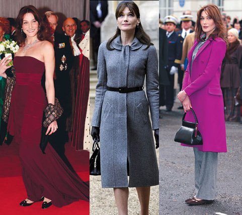Carla Bruni-Sarkozy a cucerit publicul britanic in martie 2008, cand si-a insotit sotul intr-o vizita de stat in Marea Britanie. Ea a purtat un pardesiu gri care a facut senzatie si a intrecut-o pe suverana britanica in clasamentul Celebrity Hat Wearers (topul celebritatilor care poarta palarii) pe 2009.
