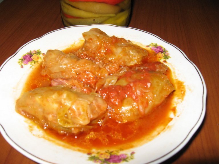 500 gr. carne, 1 buc. varza marisoara, o ceasca orez, 3 buc. ceapa, 2 linguri bulion de rosii, 2 linguri untura